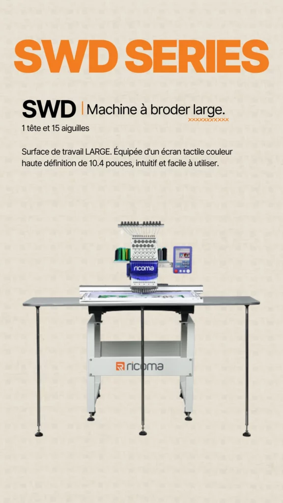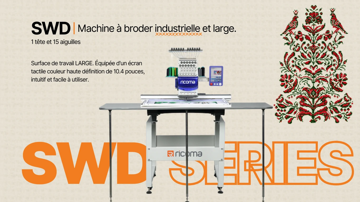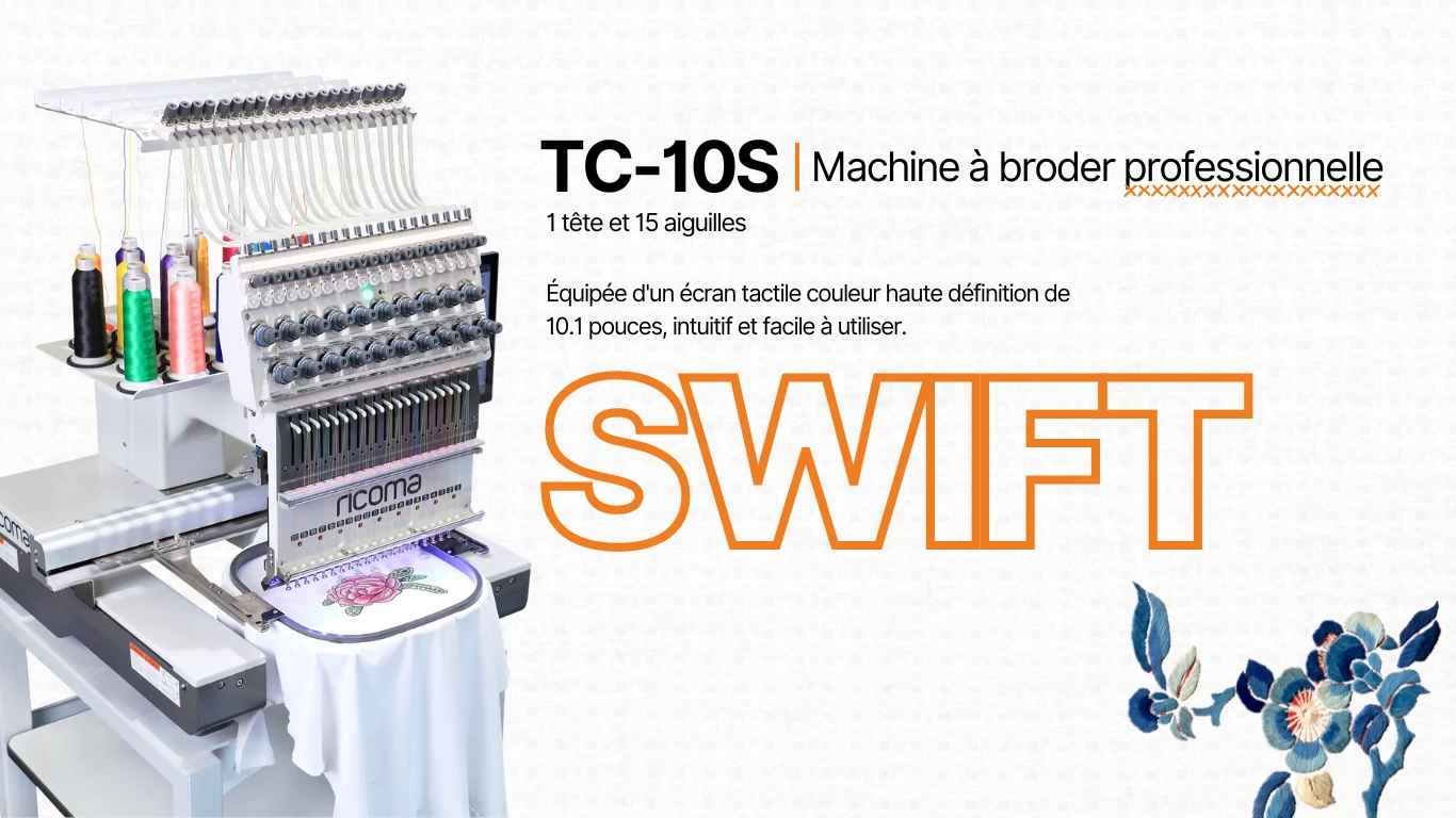 Optimisez votre flux de production et augmentez vos revenus grâce à nos solutions de broderie performantes. Avec les machines Ricoma, vous accélérez vos processus de personnalisation tout en garantissant une qualité de réalisation exceptionnelle.